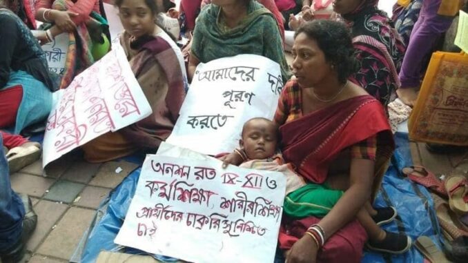 ‘আমরা ক্লান্ত। যদি চাকরিই না হয়, তাহলে যেন মরেই যাই। এখানেই নাহয় মরি। না জিতে ফিরব না, মরলে মরব।’ ধ্বস্ত, ক্লান্ত, মলিন সাধারণ মুখগুলো টানা বলে যাচ্ছেন এক কথা। হ্যাঁ, মরে যেতে চাইছেন! ২০১৯ সালে! কষ্ট করে পড়াশোনা করে, চাকরির পরীক্ষায় কৃতকার্য হয়েও চাকরি না পাওয়ার হতাশা এতটাই গ্রাস করে ফেলছে যে, মরে যেতে চাইছেন একদল মানুষ! নদীয়া, মুর্শিদাবাদ, বীরভূম, দিনাজপুর, মেদিনীপুর, হাওড়া, হুগলি… দূর দূর থেকে এসে, প্রাপ্য চাকরি সুনিশ্চিত করতে মহানগরের রাস্তায় অনশনের পথ বেছে নিয়েছেন ওঁরা! দুধের ছানাকে বুকে চেপে বসে রয়েছেন দৃঢ়প্রতিজ্ঞ তরুণী মা-ও! জনাপঞ্চাশ অনির্দিষ্টকালীন হাঙ্গার স্ট্রাইক শুরু করে দিলেও, বাকিরাও প্রায় খাচ্ছেন না কিছুই! ইতিমধ্যে হসপিটালাইজড বেশ কয়েকজন।