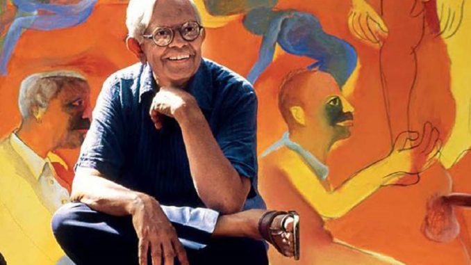 টেট মডার্ন-এর রেট্রোস্পেক্টিভের নাম-ছবিটি দেখুন। আবারও, ভূপেনের ছবির প্রথমেই চোখে পড়ার মতো যে বৈশিষ্ট্য, রঙের ব্যবহার দেখুন। প্রায় অভাবনীয় রঙের ব্যবহার থেকে চোখ সরালে, একজন মানুষ। সম্পূর্ণ নগ্ন। তিনি তাঁর বারান্দা থেকে দেখছেন। পায়ের কাছে, একখানা চাদর আর বালিশ। তাঁর বিছানা, নিশ্চিতভাবেই। বারান্দার বাইরে বিভিন্ন দৃশ্য। তিনটি ভিন্ন ফ্রেমে দুজন মানুষ ও ভারবাহী গাধা।