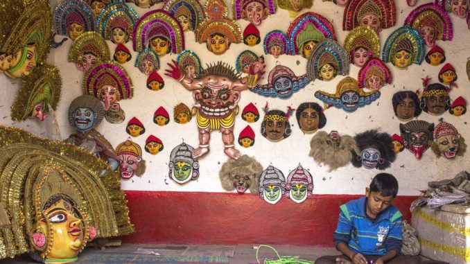 গৌতম সূত্রধর, বয়স ৩৬। বাবার নাম নিমাই চন্দ্র সূত্রধর, ঠাকুরদার নাম ছুটুলাল সূত্রধর। ওঁর দোকানে একটি দশ-এগারো বছরের বাচ্চা এবং ষোলো-সতেরো বছরের কিশোর স্বাভাবিক দক্ষতায় মুখোশের চক্ষুদান করছে রং-তুলির স্বচ্ছন্দ টানে। এরা যথাক্রমে গৌতমবাবুর ছেলে এবং ভাইপো— অভিজিৎ সূত্রধর (ক্লাস সেভেন) এবং প্রসেনজিৎ সূত্রধর (ক্লাস ইলেভেন)!