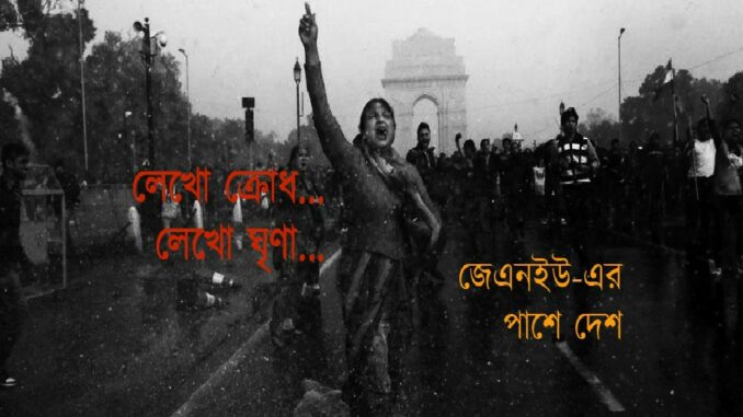 ‘আমার কোনও ভয় নেই তো?’ বলা দুধে-ভাতে থাকা মানুষেরাও পথে নামছে। যে অধ্যাপক আমায় বলছিলেন যে, ২০১৪ সালে ‘হোক কলরব’-এর সময়ে শেষ এরকম এত মানুষের সঙ্গে ক্ষোভে ফুঁসতে ফুঁসতে পথ হেঁটেছিলেন, তিনিও এনআরসি-সিএএর বিরুদ্ধে ও জেএনইউ-তে রাষ্ট্রীয় সন্ত্রাসের বিরুদ্ধে পথে নেমেছেন, নামছেন। আর, তিনি হয়তো বুঝতেও পারছেন যে, মিছিলে পথ হাঁটা আর বারবার সন্ত্রাসবাদী বিজেপির বিরুদ্ধে সমস্বরে গলা মেলানো ঘন ঘন করতে হবে তাঁকেও। জেএনইউতে এবিভিপি ও হিন্দুত্ববাদী সন্ত্রাসবাদীদের আক্রমণে আহত ২০ জনের মধ্যে রয়েছে আমার দুই ছাত্রছাত্রী। যাদবপুরের তুলনামূলক সাহিত্যবিভাগে পড়ার পরে তারা জেএনইউ গেছে পড়তে। দিল্লি বিশ্ববিদ্যালয় থেকে স্নাতক ডিগ্রি নিয়ে আমাদের তুলনামূলক বিভাগে স্নাতকোত্তরে ভর্তি হয়েছে যে ছাত্র, বিজেপি-বিরোধী মিছিলে গিয়ে অন্যদের সঙ্গে কলকাতা পুলিশের মার খেয়েছে সেও, গুরুতর চোট পেয়েছে হাতে। পরিচিত-অপরিচিত ছাত্রছাত্রীদের মার খাওয়ার খবরে কেঁপে ওঠে সংবেদনশীল মানুষ; কারণ, প্রভূত সম্ভাবনাময় ছাত্রছাত্রীদের অত্যাচার করার রাষ্ট্রীয় উদ্দেশ্য বোঝা যায়। আর, জামিয়া মিলিয়া বা জেএনইউ– ছাত্রছাত্রীদের হস্টেলে ঢুকে রাষ্ট্রীয় গুণ্ডাদের অত্যাচারের ছবি, বেছে বেছে বামপন্থী ছাত্রছাত্রীদের মারার ছবি ও রক্তাক্ত ছাত্রছাত্রী-অধ্যাপকদের ভিডিও সোশ্যাল মিডিয়ায় ছড়িয়ে পড়তেই দেশের সবখানে বেরোয় মিছিল, যার নেতৃত্বে ছাত্রছাত্রীরাই। শীতরাতের ঠান্ডাকে উপেক্ষা করে বিভিন্ন কলেজ-ইউনিভার্সিটি থেকে বেরিয়ে অসংখ্য মানুষকে সাথে নিয়ে রাস্তায় নামে ছাত্রছাত্রীরা; ফলে, জেএনইউ একা হয় না। হিন্দু রাষ্ট্রবাদীদের আনা রড, লাঠি, অ্যাসিডে আহত-রক্তাক্ত ছাত্রছাত্রীদের শোকে জ্বলে উঠছে দেশজোড়া ছাত্রছাত্রীদের ক্রোধ, শীতরাতের আগুন– এ দৃশ্য শাসনকাঠামোর কাছে ভয়ের। যেহেতু ছাত্রছাত্রীদের কোনও নির্দিষ্ট শ্রেণি হয় না, যেহেতু তাদের ভবিষ্যৎ তথা ‘কেরিয়ার’ রয়েছে, তাই পুলিশ-গুণ্ডা-রাষ্ট্রের অত্যাচারে কয়েকজন প্রতিবাদী ছাত্রছাত্রীর মাথা ফাটলে, পা ভাঙলে বা কয়েকজনের নামে পুলিশের খাতায় এফআইআর দায়ের হলেই বাকি প্রতিবাদীরা চুপ করে যাবে– রাষ্ট্রের এই পরিকল্পনা এবারও ব্যর্থ হল। বরং, যে মানুষগুলো দ্বিধাজড়তা কাটিয়ে বৃহত্তর গণআন্দোলনে যোগ দিতে পারছিলেন না, এই ঘটনাসমূহের পরে শাসকের দুশ্চিন্তা বাড়িয়ে তাঁরাও যোগ দিলেন আন্দোলনে। লির্লজ্জ রাষ্ট্রনেতাদের মিথ্যাচারে এবং অন্য দক্ষিণপন্থী দলগুলো ও কিছু বামপন্থী দলের দোনামনায় যাঁরা আন্দোলনের তত্ত্ব ও তথ্য নিয়ে বিভ্রান্ত হচ্ছিলেন, শাসকবিরোধী দৃঢ় অবস্থানে সংশয়ান্বিত ছিলেন তাঁরাও অনেকেই ঝেড়ে ফেলেছেন সংশয়। রাষ্ট্র ব