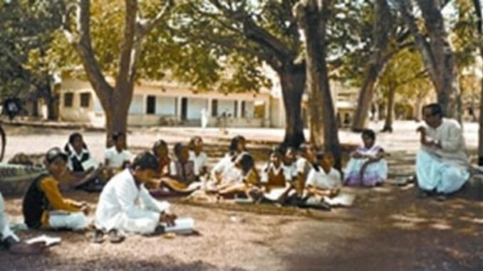 কেমন ছিল সেই ‘বিশ্বজাতিক মহামিলনযজ্ঞের প্রতিষ্ঠা’ তার পরিচয় নানাভাবে পাওয়া যেতে পারে। একশো বছরের এপার থেকে সেইসময়ের উদ্দীপনা বুঝতে চাইলে তার অন্যতর প্রকৃষ্ট উপায় হতে পারে অঙ্কুরদশার বিশ্বভারতীর বিদ্যাসমবায়ের দিকে দৃষ্টিপাত করা। বস্তুতই সে-এক সমীহ-জাগানিয়া ইতিহাস। সামষ্টিক উদ্যোগের ক্ষেত্রে সমত্ব ও মমত্ব চেতনা বোঝাতে রবীন্দ্রনাথ ‘সমবায়’ শব্দটির উপর জোর দিতেন। বিশ্বভারতীর দিগন্তহীন বিদ্যাচর্চার অভীপ্সা ও আয়োজন বোঝাতে কবি ‘বিদ্যাসমবায়’ শব্দটিই বেছে নিয়েছিলেন। ‘শান্তিনিকেতন পত্রিকা’র ১৩২৬ (১৯১৯) সালের আশ্বিন-কার্তিক সংখ্যায় ‘বিদ্যাসমবায়’ নিবন্ধে রবীন্দ্রনাথ লিখেছিলেন, “আমাদের দেশে বিদ্যাসমবায়ের একটি বড়ো ক্ষেত্র চাই, যেখানে বিদ্যার আদান প্রদান ও তুলনা হইবে, যেখানে ভারতীয় বিদ্যাকে মানবের সকল বিদ্যার ক্রমবিকাশের মধ্যে রাখিয়া বিচার করিতে হইবে।” এই লেখাটির পাশাপাশি সমসাময়িক (‘শান্তিনিকেতিন পত্রিকা’, বৈশাখ ১৩২৬) আরও একটি গুরুত্বপূর্ণ নিবন্ধ নজর করলে বোঝা যায়, রবীন্দ্রনাথ বিশ্বাস করতেন, “বিশ্ববিদ্যালয়ের মুখ্য কাজ বিদ্যার উৎপাদন, তাহার গৌণ কাজ সেই বিদ্যাকে দান করা।” সোজাকথায় ছাত্র-ছাত্রীদের পড়ানোটা বিশ্ববিদ্যালয়ের কাজ বটে কিন্তু নতুন নতুন গবেষণা এবং গোটা বিশ্বের মানবসম্পদকে মানবহিতায় তা দান করা হল বিশ্ববিদ্যালয়ের মুখ্য কাজ— এমনই মনে করতেন রবীন্দ্রনাথ। বিশ্বভারতীর সূচনা পর্বেই সেই কাজটি শুরু হয়েছিল। বিধুশেখর শাস্ত্রীর মতো পণ্ডিতেরা উচ্চাঙ্গের গবেষণাকর্মে ব্রতী হয়েছিলেন সেই তাগিদেই। শুধু গবেষণাকর্মেই নয়, বিদ্যা-আয়োজনের প্রতিটি ক্ষেত্রে; বিশেষ করে তার পঠন-পাঠনের মানচিত্রে প্রতিফলিত হয় সেই তাগিদ। পঠন-পাঠনের এই মানচিত্রকে একভাবে বলা যেতে পারে সিলেবাস। সিলেবাস প্রতিষ্ঠানের বিদ্যাচর্চার দর্পণের মতো। সূচনাপর্বের সিলেবাসে কবির অভীপ্সিত বিশ্ববিদ্যালয়-ভাবনার প্রতিফলন লক্ষ করা যায়। কেমন ছিল সেই পঠন-পাঠনের ধারা?